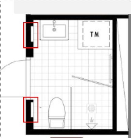 I badrummet finns två vita luckor, på exempelbilden nedan ser ni dessa markerade med rött. Innanför luckan finns en kran som kallas för ballofix. Den finner man vanligtvis upp till höger innanför luckan, de kan vara svåra att se. De kan också vara relativt tröga att vrida, om man inte regelbundet "motionerar" dem. Den ena luckan är för kallvatten och den andra är för varmvatten. För att stänga av vattnet måste man allså vrida på dessa kranar.